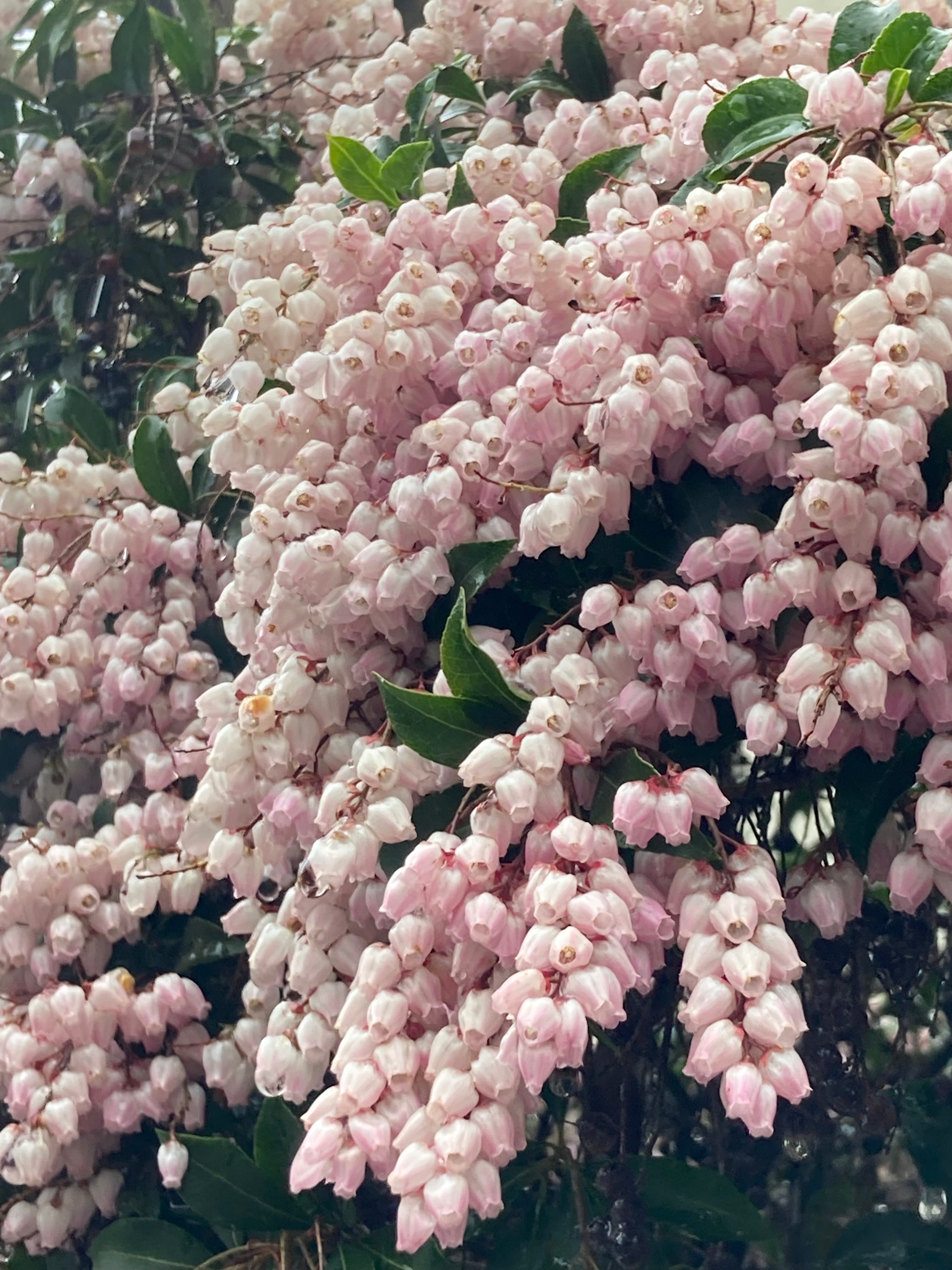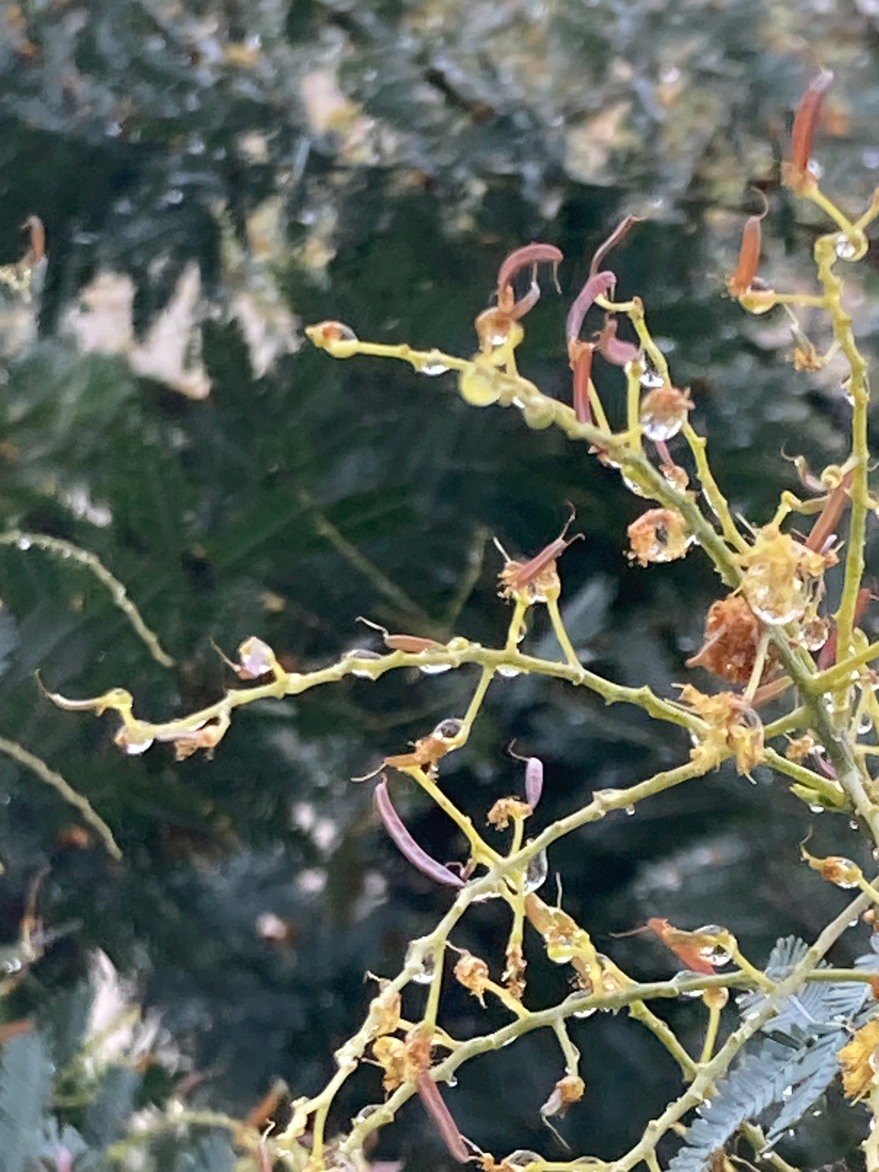 その586:お豆空色のてがみApr 01, 2023Shareおはようございます。ピンクから白に変化しながら、まだまだ綺麗な馬酔木。馬酔木の向かい側に咲いていたミモザはお豆を作りはじめています。雨に濡れてちょっと不思議。今日も楽しい1日でありますように。
